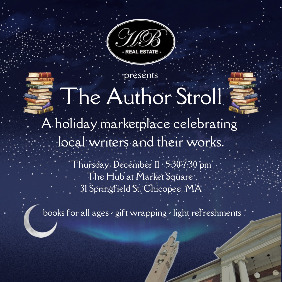 If you are looking for me this Thursday, I will be in Chicopee at The Author Stroll, presented by HB Real Estate. This event will bring more than 20 local authors into the Chicopee community for an evening of books, entertainment, light refreshments, and more! Details are below: